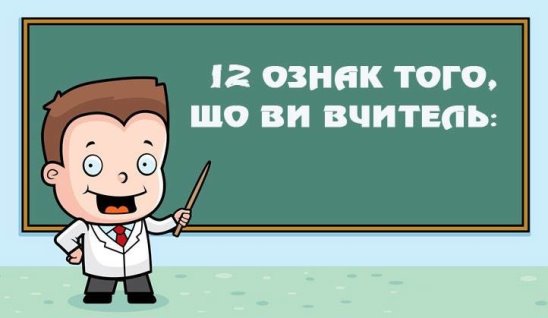 1. Ви несете з дому все, що може вам стати в нагоді на робочому місці.2. Ви приносите в будинок масу непотрібного з точки зору нормальних людей, ваших рідних і близьких, які з побоюванням спостерігають за тим, як невідворотно зростає гора макулатури у вашій квартирі.3. Ваша сім'я принесена в жертву освіти, вона теж працює з вами, хоча і не числиться в штаті. 4. Кожна неформальна зустріч з колегами неминуче переростає в міні-педраду, незважаючи на те, що ви весь час домовляєтесь про школу не говорити.5. Чужих грошей у вашій сумочці завжди більше, ніж своїх.6. Ви схоплюєтеся серед ночі, щоб записати чергову геніальну ідею до завтрашнього уроку.7. Ваш будинок вже задихається від вазочок і інших непотрібних дрібничок, викинути які вам не дозволяє совість - подарунки же.8. З вами вітається половина району і ця ж половина оцінює - як ви, де ви і з ким ви?9. Ви вмієте фарбувати, клеїти, забивати цвяхи, лагодити меблі, працювати до ранку, умовляти, прощати, ходити на роботу хворим і входити в чиєсь положення.10. Ви не вмієте: толково відпочивати, говорити «ні» адміністрації, проходити повз книжкових прилавків.11. У вашому житті в п'ять разів більше приводів для святкування, ніж у інших, - початок навчального року, початок чверті, кінець чверті - і в п'ять разів більше приводів для головного болю - початок навчального року, початок чверті, кінець чверті.12. Купуючи сумочку, ви перш за все дивитися не на її дизайн, а на її місткість, щоб туди вміщалося якомога більше зошитів!